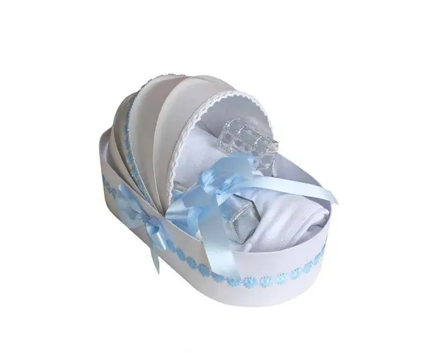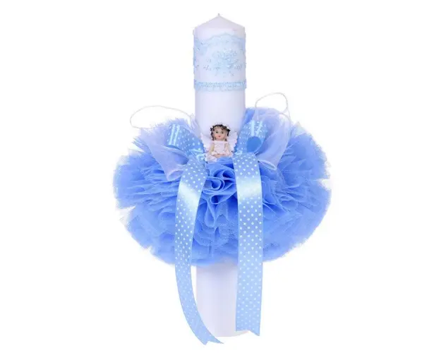Trusou botez in landou si lumanare cu ingeras, decor bleu Denikos® 111
