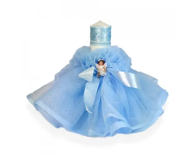 Trusou botez in landou si lumanare cu ingeras, decor bleu Denikos® 166