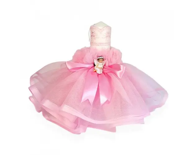 Trusou botez in landou si lumanare cu rochita si ingeras, decor roz Denikos® 167