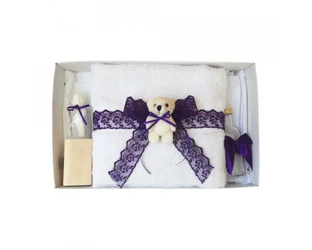 Trusou botez cu ursulet si lumanare glob, dantela si ursuleti, decor Mov, Denikos® 604 DESCRIERE Set special creat pentru ceremonia de botez. Setul este alcatuit dintr-un trusou complet ambalat intr-o cutie dreptunghiulara si o lumanare decorata cu un glob de tul alb, dantela, fundite asortate si 2 ursuleti dragalasi. Setul contine: - cutie de trusou cu capac transparent; - prosop mare pentru bebelus, dimensiuni 70 x 140 cm, 100% bumbac; - panza de mir, 100% bumbac; - prosop pentru preot, dimensiuni 30 x 50 cm, 100% bumbac; - fasa de botez, dimensiune 150 cm; - sticluta de mir, capacitate 100 ml; - sapunel; - cutiuta pentru suvita de par. - lumanare de botez (35 cm inaltime). PERSONALIZARE Produsul se poate personaliza cu numele copilului. Numele copilului poate fi scris prin brodare pe prosopul copilului, panza si fasa (cost suplimentar). Daca doresti personalizare, alege la optiuni cu personalizare si te vom contacta telefonic pentru a stabili detaliile. Produsul cu denumirea Trusou botez cu ursulet si lumanare glob, dantela si ursuleti, decor Mov, Denikos® 604 face parte din brandul Produs vandut si livrat de sc denikos creativ shop online srl, se afla in categoria Tetine si subcategoria