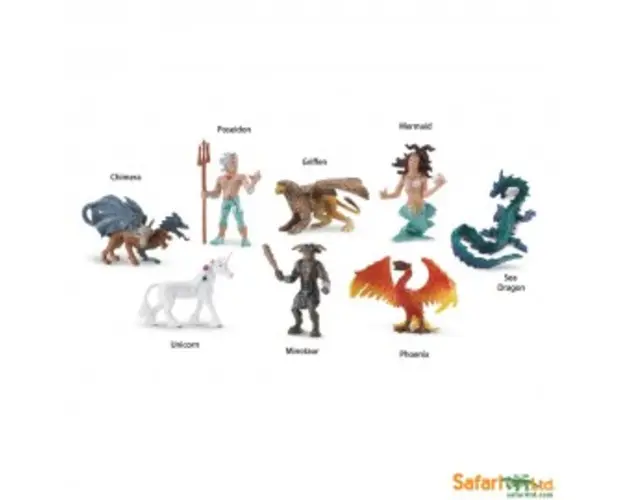 Tub 8 figurine - Personaje miticeSetul contine 8 mini figurine colectionabile din plastic, vopsite manual. Dimensiunile figurinelor variaza intre 4 si 7.5 cm. Vopseaua nu este toxica. Nu contine ftalati si plumb.Figurinele sunt ambalate intr-un tub. Produsul cu denumirea Tub 8 figurine - Personaje mitice face parte din brandul Safari ltd, se afla in categoria Tuburi cu figurine si subcategoria