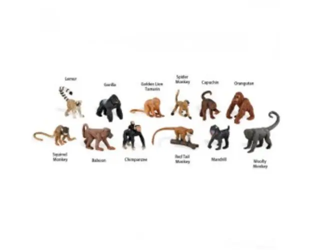 Tub figurine MaimuteSetul contine 12 mini figurine colectionabile din plastic, vopsite manual, reprezentand specii de maimute.Dimensiunile figurinelor variaza intre 4 si 7.5 cm.Vopseaua nu este toxica. Nu contine ftalati si plumb.Figurinele sunt ambalate intr-un tub. Produsul cu denumirea Tub figurine Maimute face parte din brandul Safari ltd, se afla in categoria Tuburi cu figurine si subcategoria