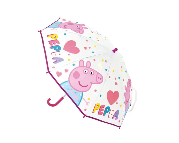 Caracteristici Umbrela manuala Peppa Pig: Cand ploile vin este firesc sa doresti o protectie temporara cat timp te deplasezi rapid dintr-un loc in altul Provocarea vine atunci cand nu stii ce sa alegi astfel incat sa ramai protejat dar si sa pastrezi umbrela mai mult timp... Noi iti recomandam aceasta umbrela pentru ca: Umbrela baston transparenta Peppa Pig este dedicata fetitelor de 5-6 ani Designul placut si structura robusta dar in egala masura usor de manevrat califica aceasta umbrela ca fiind perfecta pentru copii Umbrela baston transparenta Peppa Pig are: 8 panouri, tija metalica cu spite de otel cu diametrul de 8mm, manerul si varful din PVC Material: Poliester Produs original 100% Dimensiune: 46 cm, diametru 80 cm Produsul cu denumirea Umbrela manuala Peppa Pig face parte din brandul Stamco, se afla in categoria Seturi mobilier gradinita si subcategoria