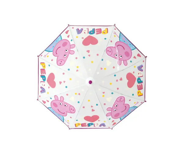 Caracteristici Umbrela manuala Peppa Pig: Cand ploile vin este firesc sa doresti o protectie temporara cat timp te deplasezi rapid dintr-un loc in altul Provocarea vine atunci cand nu stii ce sa alegi astfel incat sa ramai protejat dar si sa pastrezi umbrela mai mult timp... Noi iti recomandam aceasta umbrela pentru ca: Umbrela baston transparenta Peppa Pig este dedicata fetitelor de 5-6 ani Designul placut si structura robusta dar in egala masura usor de manevrat califica aceasta umbrela ca fiind perfecta pentru copii Umbrela baston transparenta Peppa Pig are: 8 panouri, tija metalica cu spite de otel cu diametrul de 8mm, manerul si varful din PVC Material: Poliester Produs original 100% Dimensiune: 46 cm, diametru 80 cm Produsul cu denumirea Umbrela manuala Peppa Pig face parte din brandul Stamco, se afla in categoria Seturi mobilier gradinita si subcategoria