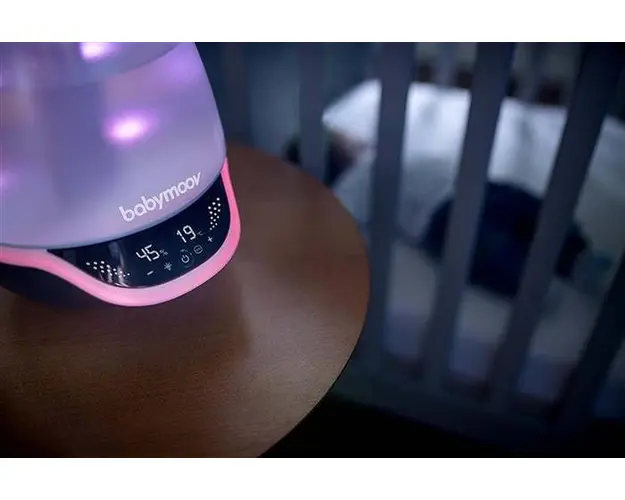 Umidificator complex care utilizeaza tehnologia ultrasunetelor pentru dispersia aburilor.Include si o lumina de veghe, sub forma unui led cu 7 variante de culoare(lumina care poate fi oprita)Aparatul Produsul cu denumirea Umidificator digital cu ultrasunete 2 in 1 Hygro Plus face parte din brandul Babyono, se afla in categoria Igiena si ingrijire si subcategoria