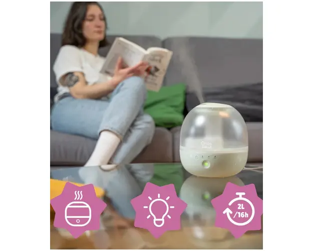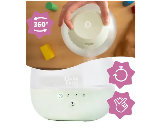 Cu functie dubla, Bubble de la Badabulle este un produs minuneIn primul rand, este un umidificator elegant, care se incadreaza cu usurinta in orice incapere, care faciliteaza respiratia bebelusilor, a Produsul cu denumirea Umidificator si lampa de veghe Badabulle Bubble face parte din brandul Badabulle, se afla in categoria Igiena si ingrijire si subcategoria
