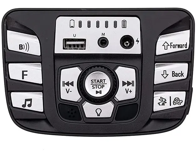 Panou multimedia cu afisaj si butoane de control, conector audio MP3, Functie Radio, Povesti si cantece in limba engleza si mufa USBTensiune 12VPort USBnbspAfisare nivel baterienbspFunctie Bluetoothn Produsul cu denumirea Unitate audio masinuta electrica cu USB face parte din brandul Nichiduta, se afla in categoria Litere- limbaj- cifre si subcategoria